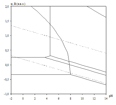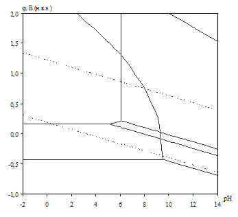 2.6 Построение диаграмм рН – потенциал систем сплав МН19 – H2O и сплав МНЖМц30–1–1 – Н2О при 25оС Линии на диаграммах рН – потенциал рассчитываются по равновесным процессам. В общем виде для процесса