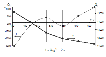 Рис. 1.2. Зависимости энергий смешения компонентов системы Cu – Ni от температуры На основании полученных данных были вычислены уравнения температурной зависимости энергий смешения в области низких температур.