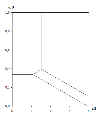 Диаграмма рН – потенциал системы Cu – H2O при 25оС, Табл. 1.10.