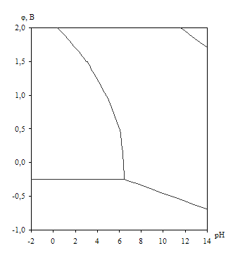 Диаграмма рН – потенциал системы сплав МН19 – Н2О при 25оС,