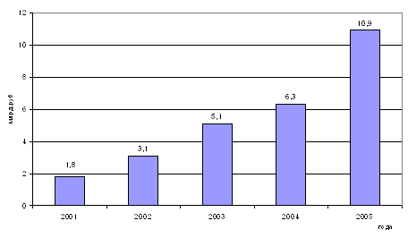 Рис. 2.2.1. Темпы роста рынка консалтинговых услуг в России в период 2001-2005г.г.[17] Спектр услуг, оказываемых российскими консалтинговыми компаниями, достаточно широк и ничем не отличается от американского или европейского набора. Можно выделить следующие направления консалтинговых услуг: общее управление и администрирование, управление кадрами, оценочная деятельность, финансовый, юридический, налоговый, маркетинговый и IT- консалтинг, а также производственный консалтинг. Основой текущего спроса на консалтинговые услуги является предоставление заказчикам максимально широкого спектра услуг, охватывающего самые различные области управления. По итогам 2007 года доля выручки от оказания услуг в области ИТ-консалтинга составляет почти 60% от всех доходов консалтинговых компаний (рис. 2.2.2).