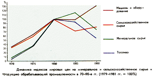 специализации Внешняя торговля развитых и развивающихся стран (географическая и товарная структура экспорта (импорта) Специализация в международном разделении труда на производстве и экспорте продукции обрабатывающей промышленности, типичная для экономически развитых стран, предполагает значительные капиталовложения в экономику и наличие высоко квалифицированной рабочей силы. Например, такие небольшие по площади страны как Бельгия, Нидерланды, Люксембург, не имеющие своих значимых природных ресурсов, входят в число стран - лидеров мировой торговли. Они импортируют сырье и полуфабрикаты, экспортируют готовую продукцию, обеспечивая высокие прибыли экономике и доходы населению. В структуре экспорта и импорта экономически развитых стран преобладает продукция обрабатывающей промышленности, прежде всего, машины и оборудование. В импорте значительна доля сырья и топлива. Подобная структура внешней торговли объясняется ее географией (экономически развитые страны торгуют прежде всего между собой), а также развитой подетальной специализацией их промышленности. РАЗВИВАЮЩИЕСЯ СТРАНЫ В МИРОВОЙ ТОРГОВЛЕ. Структура и география внешней торговли развивающихся стран была заложена в колониальный период. Экономические и политические связи с бывшими метрополиями, однотипная структура хозяйства (главные статьи экспорта - топливо и сырье, культуры тропического земледелия, не пользующиеся спросом на внутренних рынках) препятствовали развитию межрегиональной торговли. Мировая тенденция снижения цен на сырье (главной статьи экспорта развивающихся стран) и роста цен на продукцию обрабатывающей промышленности, (главной статьи экспорта промышленно развитых стран) ставит первые в условия неэквивалентного обмена: они должны продавать все больше и больше, чтобы купить необходимые для модернизации хозяйства машины и оборудование.