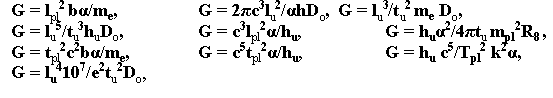The further researches have shown, that that Newtonian constant of gravitation G can be expressed by means of fundamental superconstants [2-9]: G=f (hu , lu , tu , TEN EQUIVALENT FORMULAS FOR CALCULATION OF NEWTONIAN CONSTANT OF GRAVITATION G.Opened group of universal superconstants and revealed global connection of fundamental constants have allowed to receive the mathematical formulas for calculation of Newtonian constant of gravitation G [2,3.5]. It turned out, there are several formulas. As confirmation to this, 10 equivalent formulas for calculation of that Newtonian constant of gravitation G below are given: