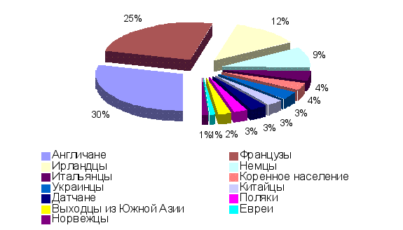 Около 2/3 населения Канады составляют англоканадцы и франкоканадцы. Около 1/4 населения составляют национальные меньшинства, в большинстве своем сравнительно недавние иммигранты и их потомки.