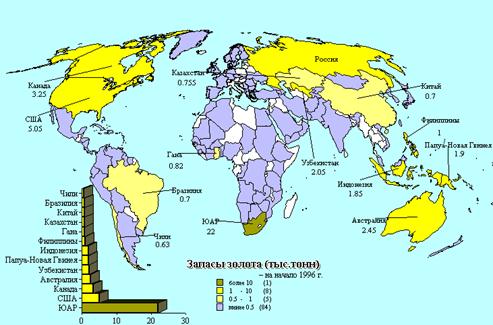 Использованы данные Константинова М.М. (1998), Беневольского Б.И. (1995) Мировые запасы золота Рис. 1.3