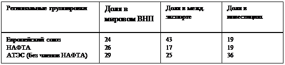 Таблица №1 Наиболее значимые интеграционные экономические организации в основных регионах мирового хозяйства