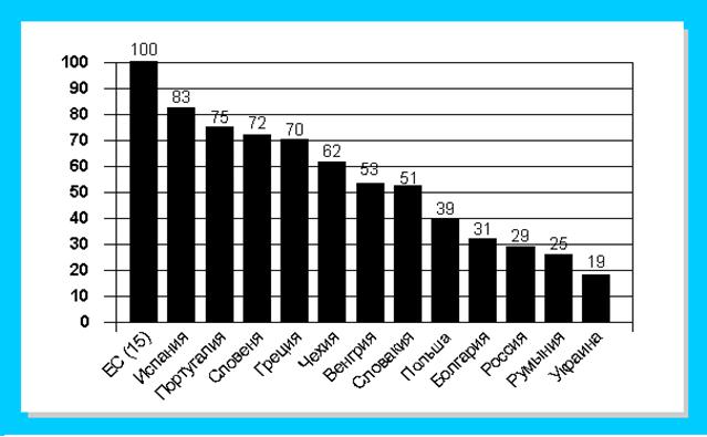 2.4 Сотрудничество стран Восточной Европы и Европейским союзом Переходный процесс и переориентация в сторону Западной Европы – два решающих вызова, с которыми сталкиваются страны Восточной Европы начиная с 1989г. Если в начале 90-х гг. переход от системы централизованного планирования к рыночной экономике был основной целью экономической политики, то сейчас большое значение приобрели требования более тесной интеграции с западноевропейскими странами. На встрече в Копенгагене в июне 1993г. Европейский совет сформулировал 3 критерия, которым должны соответствовать кандидаты на вступление в ЕС: · политический критерий – стабильность институтов, гарантирующих демократию, власть закона, соблюдение прав человека, уважение и защиту прав меньшинств; · экономический критерий – наличие функционирующего рыночного хозяйства, а также способность противостоять конкурентному давлению и рыночным силам в рамках ЕС; · критерий, связанный с принятием институциональных и юридических норм ЕС, – способность выполнять обязательства члена ЕС, в т.ч. в отношении создания политического, экономического и валютного союза. Таким образом, требования для перехода стран Восточной Европы к рынку и требования для их вступления в Евросоюз во многом совпадают. В этом году 10 стран Восточной Европы намерены вступить в Европейский союз. На этом пути многими из них достигнуты весьма впечатляющие успехи, среди которых надо прежде всего выделить продвижение к копенгагенским критериям и переориентацию внешнеэкономических связей. В Венгрии, Польше, Чехии, Словении доля ЕС во внешней торговле составляет уже от 60 до 70%. Обнаруживается, что принятие стран Восточной Европы в ЕС – более дорогостоящий проект, чем считалось ранее. Это усиливает позиции так называемых европессимистов, полагающих, что ЕС не выдержит такой нагрузки. При распространении на страны-кандидаты финансовой поддержки отстающим регионам, а также обязательств в рамках общей сельскохозяйственной политики ежегодные расходы бюджета ЕС придется увеличить минимум на 30–40 млрд евро. Тем не менее установка на расширение ЕС на восток не будет пересмотрена. Не исключен только пересмотр финансовых условий. Становясь полноправными членами Европейского союза, страны ЦВЕ официально включаются в жесткий институционально-правовой каркас ЕС, несмотря на растущий дискомфорт в связи с новым изданием «ограниченного суверенитета». Проблема различия между ЕС и странами-кандидатами на вступление в Евросоюз остается. У Польши, самой крупной из стран Восточной Европы, этот разрыв составлял в конце 90-х гг. около 2% показателя для 15 стран-членов ЕС (ЕС-15), а у всех прочих кандидатов – менее 1%: Таблица 2.11 Динамика изменения показателей ВВП на душу населения стран ЦВЕ в сравнении со средним значением ВВП ЕС (15 стран = 100).
