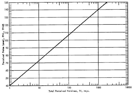 Figure 4.2 Perceived noise level as a function of NOYs Conceptually, the calculation of EPNL involves the following steps. 1. Determine the NOY level for each band and sum them by the relation