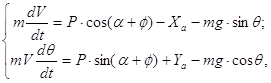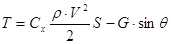 where: m is aircraft mass; P is thrust; a is the angle of attack, j is the angle of engine installation; q is climb angle which is equal to b or g, depending on the climb stage.