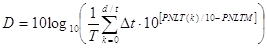 where k denotes an interval in time, i denotes the several frequency bande, and n(k) is the NOY level of the noisiest band. This reflects the “masking” of lesser bands by the noisiest. 2. The total PNL is then PNL(k) = 40 + 33.3 log10N(k). 3. Apply a tone correction c(k) by identifying the pure tones and adding to PNL an amount ranging from 0 to 6.6 dB, depending on the frequency of the tone and its amplitude relative to neighboring bands. 4. Apply a duration correction according to EPNL = PNLTM + D, where PNLTM is the maximum PNL for any of the time intervals. Here