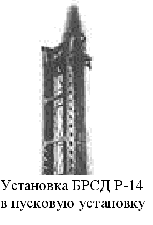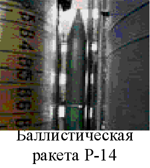 Р Маршевый двигатель РД-216, состоявший из двух идентичных двигательных блоков, развивал тягу на земле 138 т. Использование в его конструкции новых оригинальных технических решений позволило значительно повысить надежность и упростить эксплуатацию. Впервые применялась система опорожнения баков (СОБ), в результате чего появилась возможность уменьшить гарантированный остаток топлива и повысить дальность стрельбы. Автономная инерциальная система управления ракеты также содержала ряд новинок. Впервые в отечественной практике была установлена гиростабилизированная платформа с воздушным подвесом гироскопов, а также генератор программных импульсов, что позволило снизить инструментальные ошибки. Приборы СУ размещались в приборном отсеке, который располагался между топливными баками. В качестве органов управления использовались газоструйные рули. КВО составило 1300 м, что для того времени считалось высоким показателем. Ракета оснащалась моноблочной отделяемой в полете ядерной головной частью с термоядерным зарядом мощностью 1 или 2,3 Мт. Ее отделение от корпуса обеспечивалось срабатыванием трех разрывных болтов и трех тормозных пороховых ракетных двигателей, установленных снаружи приборного отсека. Также была предусмотрена система аварийного подрыва ГЧ и выключение двигательной установки в случаи значительного отклонения ракеты от заданной траектории полета. При этом надежно блокировалась возможность развития ядерной реакции боеприпаса. В 1963 году по плану учений один ракетный дивизион осуществил пуск ракеты с ядерным боезарядом со штатной техники по полигону на Новой Земле. Все системы сработали надежно. Старт ракеты осуществлялся с наземного пускового устройства типа пусковой стол, на которое ракета устанавливалась при помощи специального установщика. После этого проводились операции по заправке компонентами топлива, прицеливание и старт. Защищенность и боеготовность такого ракетного комплекса были очень низкими. В период проведения летных испытаний базового образца начались работы по созданию модификации для шахтного варианта базирования. Первый запуск модернизированной ракеты, получившей обозначение Р-14У, состоялся 11 февраля 1962 года, а в октябре следующего года весь комплекс доводочных работ удалось закончить и новый боевой ракетный комплекс был принят на вооружение РВСН. На начало 60-х годов ракетный комплекс с БРСД Р-14У был самым совершенным в своем классе. Он обеспечивал поражение целей на дальностях до 4500 км. На каждой стартовой позиции по углам прямоугольного треугольника с катетами 80 и 70 м оборудовались три шахтные пусковые установки. После загрузки и подстыковки заправочных магистралей и силовых кабелей ракеты заправлялись и могли находиться в таком положение несколько лет. Естественно, что по сравнению с Р-12 их боеготовность значительно возросла. Однако изжить все недостатки, присущие БРК с Р-12У не удалось. ШПУ обеспечивали сохранение ракет при взрыве мегатонного заряда на дальностях свыше 2 км, что уже в то время считалось недостаточным. К тому же использование групповых стартов было явно неудачным решением. Ракеты Р-14 и Р-14У годились только для поражения площадных целей. Но несмотря на это, свыше 100 этих ракет было развернуто, в том числе - несколько в районе н.п. Анадырь. На боевом дежурстве