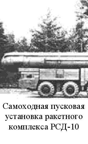 Д 22 июня Р-12 уверенно взлетела. Несмотря на явный успех, были обнаружены недостатки. Требовалось найти надежное техническое решение для того, чтобы отделение головной части от носителя не влияло на точность стрельбы. В сентябре 1958 года состоялся показ ракетной техники членам ЦК КПСС и советского правительства. Его начали с запуска ракет Р-12. Все пуски прошли успешно. 4 марта 1958 года боевой ракетный комплекс с БРСД Р-12 был принят на вооружение. Именно эти ракеты стали основным оружием созданных в декабре 1959 года Ракетных войск стратегического назначения - нового вида Вооруженных Сил СССР, со временем ставшим надежным гарантом безопасности государства. Р-12 была выполнена одноступенчатой, с топливными баками несущей конструкции. Они изготавливались из алюминиево-магневых сплавов. Верхний бак (окислителя) разделялся промежуточным днищем. Окислитель расходовался сначала из нижней части бака, что создавало более благоприятные условия для стабилизации полета. В полете баки горючего и окислителя надувались. Основные компоненты топлива (азотная кислота и керосин) воспламенялись при помощи специального пускового горючего, что было характерно и для американских ракет того времени. Двигательная установка ракеты состояла из четырехкамерного маршевого ЖРД РД-214, разработанного в ОКБ академика В. Глушко, с тягой на земле 60 т. Выход двигателя на режим осуществлялся без предварительной ступени по принципу так называемого пушечного пуска. На ракете применялась система регулирования кажущейся скорости, позволявшая в определенных пределах изменять тягу двигателя в целях обеспечения более точного движения ракеты на активном участке траектории заданному. Автономная инерциальная система управления обеспечивала управление полетом ракеты и выведение головной части в район цели. При проведении испытаний были получены предельные отклонения точки падения ГЧ от расчетной по дальности в пределах 1100 м, по направлению - около 600 м при стрельбе на максимальную дальность в 2000 км. В ее состав впервые были включены устройства нормальной и боковой стабилизации центра масс. Приборы системы управления размещались в межбаковом отсеке. В качестве органов управления использовались четыре графитовых газоструйных руля. На корпусе хвостового отсека устанавливалось четыре небольших стабилизатора. Р-12 несла моноблочную головную часть с термоядерным зарядом мощностью 1 Мт. Отделение ГЧ в полете осуществлялось с помощью пневматического толкателя. Ракета предназначалась для поражения площадных целей (площадью около 100 км). Р-12 запускалась с наземного пускового устройства (стола), куда она устанавливалась перед стартом. После проведения заправочных операций и прицеливания ракета была готова к пуску. Общее время предстартовой подготовки достигало 3 часа и в значительной степени зависело от уровня обученности боевых расчетов. Обычно ракеты хранились без головных частей в специальных сооружениях и вывозились к месту старта только перед непосредственным применением. С середины 1959 года в приграничных районах европейской части СССР началось развертывание частей и соединений, оснащенных ракетными комплексами с БРСД Р-12. В течение этого года было сформировано более десяти инженерных бригад РВГК. 15 мая 1960 года на боевое дежурство заступили ракетные див