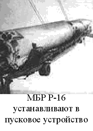 В Начиная с мая 1960 года, проводились опытно-конструкторские работы, связанные с реализацией пуска модифицированной ракеты Р-16У из шахтной пусковой установки. В январе 1962 года на полигоне Байконур был проведен первый пуск ракеты из ШПУ. 5 февраля 1963 года началась постановка на боевое дежурство первого ракетного полка (г. Нижний Тагил), вооруженного БРК с этими МБР, а 15 июля этого же года этот комплекс был принят на вооружение РВСН. Ракета Р-16 была выполнена по схеме с последовательным разделением ступеней. Первая ступень состояла из переходника, к которому посредством четырех разрывных болтов крепилась вторая ступень, бака окислителя, приборного отсека, бака горючего и хвостового отсека с силовым кольцом. Топливные баки несущей конструкции. Для обеспечения устойчивого режима работы ЖРД все баки имели наддув. При этом бак окислителя наддувался в полете встречным потоком воздуха, а бак горючего - сжатым воздухом из шаровых баллонов, размещенных в приборном отсеке. Двигательная установка состояла из маршевого и рулевого двигателей, укрепленных на одной раме. Маршевый двигатель был собран из трех одинаковых двухкамерных блоков и имел суммарную тягу на земле 227 т. Рулевой двигатель имел четыре поворотные камеры сгорания и развивал тягу на земле 29 т. Система подачи топлива во всех двигателях - турбонасосная с питанием турбин продуктами сгорания основного топлива. Вторая ступень, служившая для разгона ракеты до скорости, соответствовавшей заданной дальности полета, имела аналогичную конструкцию, но была выполнена короче и в меньшем диаметре. Ее ДУ во многом была заимствована от первой ступени, что удешевляло производство, но в качестве маршевого двигателя устанавливался только один блок. Он развивал тягу в пустоте 90 т. Рулевой двигатель отличался от аналогичного двигателя первой ступени меньшими размерами и тягой (5 т). Все ракетные двигатели работали на самовоспламеняющихся при контакте компонентах топлива: окислителе АК-27И и горючем - несимметричном диметилгидразине (НДМГ). Р-16 имела защищенную автономную инерциальную систему управления. Она включала автоматы угловой стабилизации, стабилизации центра масс, систему регулирования кажущейся скорости, систему одновременного опорожнения баков, автомат управления дальностью. В качестве чувствительного элемента СУ впервые на советских межконтинентальных ракетах была применена гиростабилизированная платформа на шарикоподшипниковом подвесе. Приборы системы управления располагались в приборных отсеках на первой и второй ступенях. КВО при стрельбе на максимальную дальность 12000 км составило около 2700 м. При подготовке к старту ракета устанавливалась на пусковое устройство так, чтобы плоскость стабилизации находилась в плоскости стрельбы. МБР Р-16У конструктивно почти не отличалась от Р-16. Для обеспечения старта из ШПУ была изменена автоматика работы двигательной установки первой ступени. На корпусе ракеты были сделаны площадки для установки бугелей, фиксирующих ее положение в направляющих шахтной пусковой установки. Баки горючего стали наддуваться азотом. МБР Р-16 оснащалась отделяемой моноблочной головной частью двух типов, отличавшихся мощностью термоядерного заряда (порядка 3 Мт и 6 Мт). ГЧ конической формы с полусферической вершиной крепилась к корпусу второй ступен