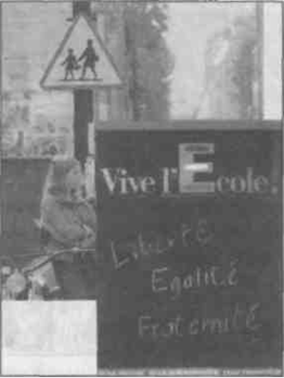 VI–VII – Картинки с особым языком, требующим "декодирования" (рекламы, афиши, обложки книг) "Vive l'école!"