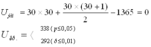 Статистический анализ результатов исследования скорости чтения по критерию Манна-Уитни показал следующее. Гипотеза: Но – показатели состояния скорости чтения у школьников с дислексией после эксперимента не выше, чем до эксперимента. Н1 – показатели состояния скорости чтения у школьников с дислексией после эксперимента выше, чем до эксперимента. Были получены следующие результаты. n1=12,13,14,15,15,15,16,17,18,19,19,20,20,20,24,24,25,26,27,28,30,31,32,32,33,34,34,35,35,35; n2=20,22,14,25,25,15,20,28,20,32,21,33,25,33,40,40,28,29,30,47,50,39,40,40,41,43,38,44,39,44.