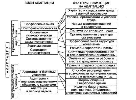 Рисунок 1.1 – Виды адаптации и факторы на нее влияющие В МОУ «Центр образования» организуются специальные адаптационные мероприятия для сотрудников, принятых в штат. Мероприятия включают в себя знакомство с традициями и обычаями школы, знакомство с педагогическим коллективом, образовательной программой, вводные инструктажи, вводные семинары, закрепление кураторов и т.д. Человек поступая на работу, включается в систему внутриорганизационных отношений, занимая в ней одновременно несколько позиций. Каждой позиции соответствует совокупность требований, норм, правил поведения, определяющих социальную роль человека в коллективе как работника, коллеги, подчинённого, руководителя, члена коллективного органа управления, общественной организации и т.п. От человека, занимающего каждую из названных позиций, ожидается соответствующее ей поведение. Поступая на работу в то или иное учебное заведение, человек имеет определённые цели, потребности, нормы поведения. В соответствии с ними сотрудник предъявляет определенные требования к организации, к условиям труда и его мотивации. Процесс взаимного приспособления, или трудовой адаптации, сотрудника и организации будет тем успешнее, чем в большей степени нормы и ценности коллектива являются или становятся нормами и ценностями сотрудника, чем быстрее и лучше он принимает, усваивает свои социальные роли в коллективе. 1.4 Обучение персонала Образование – процесс и результат усвоения систематизированных знаний, умений, навыков и способов поведения, необходимых для подготовки человека к жизни и труду. Уровень образования обусловливается требованиями производства, научно-техническим и культурным уровнем, а также общественными отношениями. Образование делится на два вида: общее и профессиональное. Образование должно осуществляться непрерывно. Профессиональное образование как процесс – это одно из звеньев единой системы непрерывного образования, а как результат – подготовленность человека к определенному виду трудовой деятельности, профессии, подтвержденная документом (аттестатом, дипломом, свидетельством) об окончании соответствующего учебного заведения. В Российской Федерации профессиональное образование дает система учебных заведений, включающая: профессионально-технические училища, техникумы, высшие учебные заведения, институты и факультеты повышения квалификации и переподготовки кадров, учебные центры, специальные курсы и семинары. Профессиональное образование осуществляется как на основе государственных стандартов по подготовке специалистов, так и с использованием гибких учебных программ и сроков обучения. В дальнейшем речь пойдет о профессиональном образовании персонала, которое осуществляется посредством его обучения. Обучение персонала – основной путь получения профессионального образования. Это целенаправленно организованный, планомерно и систематически осуществляемый процесс овладения знаниями, умениями, навыками и способами общения под руководством опытных преподавателей, наставников, специалистов, руководителей и т.п. Следует различать три вида обучения. Подготовка кадров – планомерное и организованное обучение и выпуск квалифицированных кадров для всех областей человеческой деятельности, владеющих совокупностью специальных знаний, ум