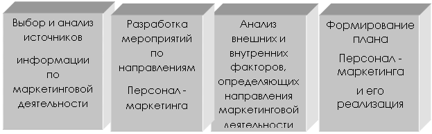 Рисунок 1.4 – Методика планирования дополнительной потребности фирмы в персонале 1.9 Маркетинг персонала Маркетинг персонала – вид управленческой деятельности, направленной на определение и покрытие потребности в персонале. Задача маркетинга персонала (или «персонал – маркетинга») – владеть ситуацией на рынке труда для эффективного покрытия потребности в персонале и реализации тем самым целей организации. Маркетинговая деятельность в области персонала представляет собой комплекс взаимосвязанных этапов по формированию и реализации плана персонал – маркетинга. Общая методология маркетинга персонала базируется на основных положениях теории «производственного» маркетинга.
