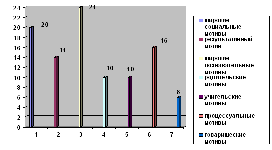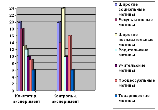Рисунок 1. Уровни преобладающей мотивации (констатирующий эксперимент) (%)