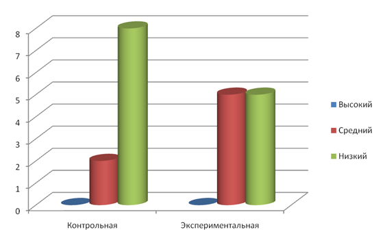 Результаты экспериментальной группы представим наглядно в виде таблицы №5. Таблица 5 Результаты экспериментальной группы на констатирующем этапе эксперимента