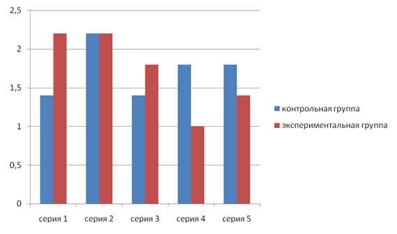Более наглядно результаты обследования можно представить в виде диаграммы на рисунке 2. Хотя уровни по некоторым заданиям значительно отличаются, общие балловые суммарные показатели обеих групп равны (8,6).