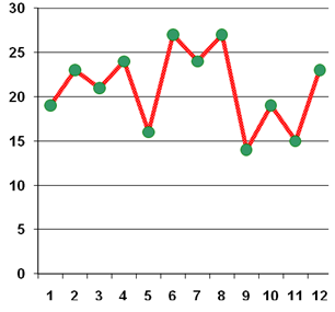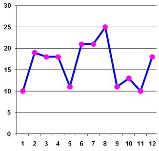 X – имя ребёнка, соответственно нумерации в таблице 1; Y – количество баллов График 2