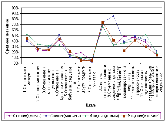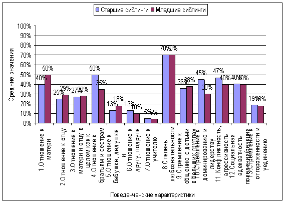 Дипломная работа: Гендерные особенности взаимоотношений родителей и детей младшего школьного возраста со старшими и младшими сиблингамиДипломная работа: Гендерные особенности взаимоотношений родителей и детей младшего школьного возраста со старшими и младшими сиблингамиТЕМА гендерные Особенности взаимоотношений родителей и детей младшего школьного возраста со старшими и младшими сиблингамиВведениеСтановление ребенка как личности начинается в семье, выступающей первым и определяющим внешним условием в жизни ребенка. Это те близкие люди, которые осуществляют не только уход за ребенком, но и «вводят в культуру». В семье ребенок впервые начинает взаимодействовать с окружающей его действительностью, строить свое отношение к ней. Первые люди, с которыми общается ребенок — родители. Но для становления личности необходимо общение не только с взрослыми, но и со сверстниками, детьми, которые старше или младше ребенка. В семье, где есть сиблинги, взаимодействие между ними способствует развитию личности каждого ребенка. Начиная с поиска новых форм поведения у первенца, что может служить стимулом, толчком в развитии его личности и заканчивая механизмом идентификации младшего ребенка как с родителем, так и со старшим сибсом, который подчас превосходит по своему авторитету и родителей. Наличие сиблингов в семье, их гендерные и возрастные особенности, являются особым фактором психического развития ребенка. Восприятие и интерпретация семейной ситуации с позиции сиблинга, позволяет в свою очередь понять, почему ребенок поступает так или иначе. Таким образом, необходимо выяснить, как он видит семью и интерпретирует происходящее. Одним из основных направлений исследований формирования детских отношений данной проблематики в зарубежной психологии является изучение особенностей развития ребенка в зависимости от порядка его рождения в семье. Основу такого подхода заложили З. Фрейд и А. Адлер., отметив, что позиция ребенка среди его сестер и братьев имеет особое значение для всей его дальнейшей жизни, детерминируя установки, сопутствующие стилю жизни. Большинство современных исследований в области детских отношений преимущественно ограничены изучением факторов, определяющих их специфику. К числу последних относятся: материнское отношение к детям, определяющее взаимоотношения между сиблингами; влияние старших сиблингов на формирование социальных умений у младших; влияние пола сиблинга на формирование идентичности; уход за младшим, как условие, способствующее формированию социального поведения и чувства ответственности старшего сиблинга. Вместе с тем, несмотря на теоретическую и практическую значимость полученных результатов, проблема отношения сиблингов в научной литературе представлена фрагментарно, и остается до конца не изученной. В частности, мало исследованным остается изучение гендерных особенностей детских и детско-родительских отношений, представление о сиблинге с разной ролевой позиции, в целом специфика детских отношений в семье, как разновидности межличностного взаимодействия. В данной работе мы попытались объединить данные аспекты, с целью изучения гендерных особенностей взаимоотношений родителей и детей младшего школьного возраста к старшим и младшим сиблингам. Глава 1. Роль семьи в формиров