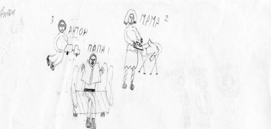 Примечание: В силу учета возрастных особенностей, бланк был предложен в приемлемой форме Приложение 3 Результаты методики «Рисунок семьи» (КРС) Антон 9 лет (Младшая сиблинговая позиция)