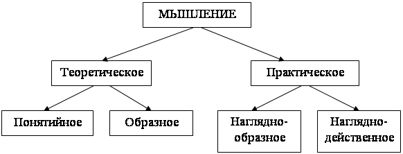 Если рассматривать характер решаемых задач, их направленность на практику или теорию, то мы говорим о теоретическом и практическом мышлении. По степени новизны, по характеру результатов мы можем иметь репродуктивное и продуктивное мышление. По предметному содержанию – математическое, поэтическое, художественное. По специфике физиологии мозга: правополушарное (эмоционально-образное) и левополушарное (логическое) [33].