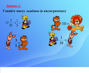Фламинго из песка строят гнёзда в форме усечённого конуса, в верхнем основании делают углубления, в которые откладывают яйца. Высота гнезда зависит от того, каким будет лето: сухим или дождливым. Если лето ожидается дождливым, то гнёзда строятся высокими, чтобы их не могла затопить вода, если засушливым-то более низкими. Одно из самых крупных животных центральной Африки – лев. Льва знает каждый, его не спутаешь ни с каким другим животным. Лев – самец, достигает высоты загривка 80–100 см при длине в 1,6 – 1,9 м. Длина хвоста от 75 до 90 см. Новорожденные львята имеют длину около 33 см, у них уже есть грива и кисть на хвосте, а тело покрыто пятнами, как у леопарда. Давайте мы с вами найдем массу львенка.
