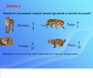 Тигр самый сильный и самый крупный из названных зверей. Ударом лапы он может сваливать оленя или лося, переплыть с убитым кабаном бурную реку. Соотнесите обыкновенную и соответствующую ей десятичную дробь.