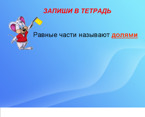 Дипломная работа: Использование компьютерных технологий для повышения наглядности курса математики 5-6 классовДипломная работа: Использование компьютерных технологий для повышения наглядности курса математики 5-6 классовДИПЛОМНАЯ РАБОТА По теме: «Использование компьютерных технологий для повышения наглядности курса математики 5–6 классов» Введение Для того чтобы развить самостоятельность и инициативность у школьников, для лучшего усвоения учебного материала и приобретения определенных навыков, ни в коем случае нельзя ограничивать учебный процесс какой-либо одной линией построения и подготовки обучения. Для достижения большего эффекта в вышеперечисленном, существуют различные методы, одним из которых является наглядный метод. Наглядность – принцип, восходящий к определенным фундаментальным отношениям, гносеологически связывающим человека и тот мир, в котором он живет, человека и людей, с которыми он общается. Как принцип, наглядность нуждается в специальной инструментовке, позволяющей «обнаружиться» объективным законам, в соответствии с которыми процесс познания становится эффективным. Применение наглядных пособий в процессе обучения занимает значительное место. Наглядность в обучении способствует тому, что у школьников, благодаря восприятию предметов и процессов окружающего мира, формируются представления, правильно отображающие объективную действительность, и вместе с тем воспринимаемые явления анализируются и обобщаются в связи с учебными задачами. Наглядность особенно важна в обучении математике ввиду того, что здесь требуется достижение более высокой ступени абстракции, чем в обучении другим предметам, а она содействует развитию абстрактного мышления (при правильном ее применении). В тесной связи с наглядностью обучения находится и его практичность. Ведь именно из жизни мы черпаем конкретный материал для формирования наглядных представлений, делая обучение согласованным с жизнью ребенка, его опытом. Процесс обучения упрощается при разумном использовании принципа наглядности. Правильное применение наглядных пособий на уроках математики способствует формированию четких пространственных и количественных понятий, развития логического мышления, речи; наглядные пособия помогают лучше усваивать новый материал. Обучение не должно быть перенасыщено иллюстрациями, схемами, таблицами и другими формами наглядности, но в некоторых труднодоступных вопросах применение наглядности необходимо. К сожалению, наглядность в учебниках математики реализована не в достаточной степени для успешного усвоения этой темы учащимися. Использование средств мультимедиа позволяет учителю разнообразить урок новыми видами деятельности, насытить его наглядной информацией, повысить мотивацию учащихся, интерес к предмету. Средства мультимедиа способствуют более глубокому и осознанному усвоению изучаемого материала. Всё вышесказанное подтверждает актуальность выбранной темы. Цель исследования – разработка комплекта электронных ресурсов для использования их с помощью интерактивной доски Smart Board к теме «Обыкновенные дроби» с целью повышения уровня наглядности. Для достижения цели исследования поставим перед собой следующие задачи: 1. Изучить психолого-педагогическую и методическую литературу по теме дип