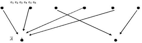 шар. Изобразите графически события: А – извлекли шар с номером, кратным трем, е3 – извлечен шар № 3, е4– извлечен шар № 4 е5 – извлечен шар № 5, е6– извлечен шар №6. Появлению события А благоприятствуют два исхода – е3,