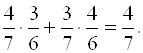 Рис. 6. Р(А)= Поясним приведенное решение. Стрелки вероятностного графа (рис.6) изображают возможные исходы испытаний, обозначения которых ставятся возле концов стрелок. В нашем случае – это буквы Ч и Б. Рядом со стрелками записываются соответствующие безусловные или условные вероятности. Каждая цепочка стрелок изображает один из исходов совместных испытаний – одну из возможных комбинаций извлечения из урны шаров: (Ч,Ч), (Ч,Б), (Б,Ч), (Б,Ч). По формуле (4) вероятности этих комбинаций получаются перемножением безусловных и условных вероятностей, записанных вдоль цепочек. Извлечению разноцветных шаров благоприятствуют исходы (Ч,Б) и (Б,Ч). сложив их вероятности, найдем искомую вероятность Р(А). Построением таблиц и вероятностных графов можно решать и более сложные задачи, когда проводятся три, четыре и даже пять совместных испытаний. Например, до пяти раз подбрасывают монету или из урны без возвращения извлекают три шара. Уровень таких задач достаточно высок для средней школы, и учащиеся, овладевшие алгоритмами построения таблиц и графов, успешно с ним справляются [24]. Школьникам предлагается также решать обратные задачи о нахождении вероятностей гипотез по предварительно заданной информации. Вероятность гипотезы вводится расширением понятия условной вероятности. Напомним, что условная вероятность была введена для