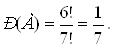 Задание 3. Из семи одинаковых билетов один выигрышный. Семь человек по очереди и наугад берут (и не возвращают обратно) по одному билету. Зависит ли вероятность взять выигрышный билет от номера в очереди? Решение. Опишем математическую модель этого примера. Перенумеруем все билеты, начиная с выигрышного. В результате опыта билеты оказываются распределенными между людьми, которые занимали определенные места в очереди. Этим упорядочивается множество из семи билетов: на первом месте оказывается билет, взятый человеком, стоявшим в очереди первым; на втором месте оказывается билет, взятый человеком, стоявшим в очереди вторым, и т. д. Таким образом, исходом опыта является получение некоторой перестановки из 7 билетов, их число n=7!. Поскольку билеты берутся наугад, то все эти. исходы равновероятны. Нас интересует вероятность события А= «человек, стоявший в очереди на k-м месте, взял выигрышный билет». Этому событию благоприятствуют исходы, при которых получаются перестановки, имеющие на k-м месте выигрышный билет, а остальные 6 мест заняты произвольной перестановкой из оставшихся шести невыигрышных билетов, их число т= 6! Следовательно,