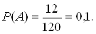 Видим, что вероятность взять выигрышный билет не зависит от номера очереди. Задание 4.На пяти одинаковых на ощупь карточках написаны буквы: на двух карточках—буква Л и на трех карточках— буква И. .Выкладываем наугад эти карточки подряд. Какова вероятность того, что выложится слово ЛИЛИИ? Решение. Опыт в этой задаче состоит в получении наугад некоторого «слова» из имеющихся пяти букв. Нас интересует вероятность события С = «получено слово ЛИЛИИ». Для выявления равновероятных исходов перенумеруем буквы так: Л1, Л2, И1, И2, И3. Теперь в результате опыта мы будем получать слово из нумерованных букв. События «получено слово Л1И1Л2И2И3»и «получено слово Л2И1Л1И3И2» разные, хотя и в том и в другом случае получено слово ЛИЛИИ, т. е. произошло интересующее нас событие С. Выписанные события благоприятствуют событию С. Ясно, что события, выписанные выше, и все возможные аналогичные есть равновероятные исходы нашего опыта. Число их равно числу перестановок в множестве из пяти элементов, т. е. п= 5!=120. Подсчитаем при помощи принципа произведения число исходов, благоприятствующих событию С. Рассмотрим множество В= {(Л1Л2);