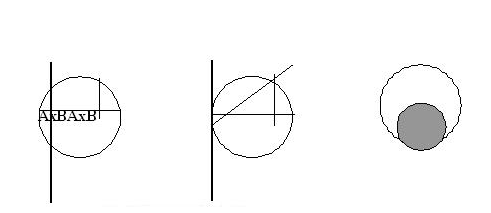 образом, искомая вероятность равна Причина неоднозначности решения нашей задачи заключается в том, что за решение одной и той же задачи, пользуясь тем, что в условии задачи не определенно понятие проведения хорды на удачу, выдаются решения трех различных задач. В самом деле, в первом решении вдоль одного из диаметров заставляют катится круглый цилиндрический стержень (рис. 7, а) . Множество всех возможных мест остановки этого стержня есть множество точек отрезка AB длины, равной диаметру. Равновероятными считаются события, состоящие в том, что остановка произойдет в интервале длины h, где бы внутри диаметра ни был расположен этот отрезок. Во втором решении стержень,