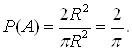 радиус круга, а – сторона вписанного квадрата, А – попадание точки в квадрат, S
