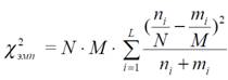 где L – количество критериев (в нашем случае это возможные отметки учащихся), N и M – количество членов в группах, ni и mi – количество человек в группе, набравших i-ый балл. Результаты вычислений по формуле представлены в таблице (см. таблицу 2). Таблица 2. Эмпирические значения критерия χ2