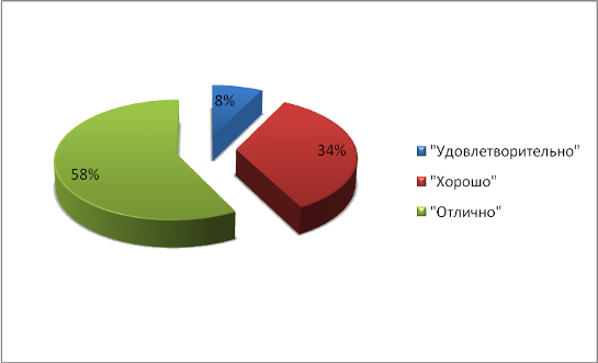 По итогам раздела «Создание итогового изображения» оценок «Не удовлетворительно» не было, «Удовлетворительно» - 6, «Хорошо» - 27, «Отлично» - 45. Таким образом, эффективно освоили программу курса «Растровый графический редактор Adobe Photoshop» 92% учащихся (рис. 27).