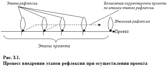 Схематично процесс рефлексии и его влияние на ход проведения проекта можно продемонстрировать следующим образом (рис. 3.1.):