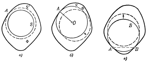 вписанная в выпуклую фигуру Ф окружность S соприкасается с границей Ф в точке А, то
