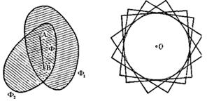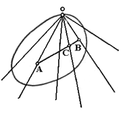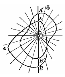 Рис. 1.1.12 Теорема доказана. [8, 22] Пусть Ф — некоторая выпуклая фигура и О — ее граничная точка. Проведем из точки О лучи, соединяющие ее с каждой точкой (внутренней или граничной) фигуры Ф (рис. 1.1.13).