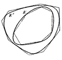 Рис. 1.1.23 Каждый из многоугольников второй последовательности заключает в себе каждый из выпуклых многоугольников первой последовательности и, следовательно, имеет больший периметр; отсюда следует, что предел периметров многоугольников второй последовательности — длина К’ не меньше предела периметров многоугольников первой последовательности — длины К. Теорема доказана. Определение 1.1.24. Периметром плоской фигуры называется длина кривой, ограничивающей эту фигуру. [8, 28]