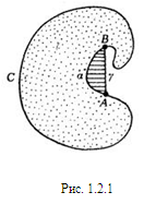 Рис. 1.1.4 Определение 1.1.5. Точка называется внешней по отношению к фигуре, если существует круг с центром в этой точке, не содержащий точек фигуры. Примером внешней точки по отношению к фигуре является точка В на рис. 1.1.4. Определение 1.1.6. Точка фигуры называется граничной, если любой круг с центром в данной точке, всегда будет содержать как точки, принадлежащие фигуре, так и точки, не принадлежащие ей. Например, точка С на рис. 1.1.4 является примером граничной точки фигуры. [7, 185] Граничные точки фигуры образуют некоторую линию — кривую или ломаную. Эта линия называется границей фигуры. Если плоская линия является границей некоторой выпуклой фигуры, то она называется выпуклой кривой, или — в том случае, когда эта линия ломаная,— выпуклым многоугольником. [7, 186] Определение 1.1.7. Выпуклым многоугольником называют и плоскую фигуру, и линию — границу этой фигуры. Определение 1.1.8. Точками, принадлежащими фигуре, или, точками фигуры, называют все ее внутренние или граничные точки. Определение 1.1.9. Если множество содержит все свои граничные точки, то оно называется замкнутым. Если же множество не содержит ни одной своей граничной точки, т.е. состоит из одних внутренних точек, то оно называется открытым. [7, 15] Определение 1.1.10. Одномерные выпуклые фигуры это линии, обладающие тем свойством, что отрезок АВ, соединяющий любые две точки А и В такой линии, целиком принадлежит ей. [8, 16] Одномерные выпуклые фигуры можно охарактеризовать как выпуклые фигуры, все точки которых являются граничными. Двумерные (плоские) выпуклые фигуры могут быть весьма разнообразны (см., например, фигуры а), б), в) на рис. 1.1.1 и а), б), в), г) на рис. 1.1.3). Определение 1.1.11. Отрезок это ограниченная одномерная выпуклая фигура. Пусть Ф — произвольная плоская фигура. Определение 1.1.12. Прямая l называется опорной прямой фигуры Ф, если она проходит хотя бы через одну граничную точку фигуры Ф и вся фигура Ф расположена по одну сторону от прямой l (рис. 1.1.5).
