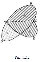 Свойство доказано. [5, 24] Свойство 1.2.2. Всякая хорда максимальной фигуры с периметром р, делящая пополам ее периметр, обязательно делит ровно пополам и ее площадь. Доказательство. Действительно, пусть у фигуры АВСD с периметром р хорда АС делит периметр пополам (рис. 1.2.2). Обозначим через S1, площадь фигуры AВС, а через S2 - площадь АDС. Предположим, что S1>S2. Построим тогда новую фигуру АВСEА, заменив линию АDС линией АЕС, симметричной с АВС относительно хорды АС. Новая фигура АВСЕА, имея прежний периметр, имеет площадь больше площади первоначальной фигуры, так как площадь новой фигуры равна 2S1, а площадь первоначальной равна S1+S2, в то время как по предположению S1>S2 и, следовательно, 2S1>S1+S2. Поэтому фигура АВСD не является, вопреки предположению, максимальной. Это доказывает, что предположение S1> S2 неверно. Аналогично доказывается, что и предположение S1<S2 приводит к противоречию. Окончательно, S1= S2. Свойство доказано. [3, 31]