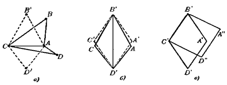 Рис. 1.2.9 б) Разобьем четырехугольник АВСD диагональю АС на два треугольника. Заменив треугольники AВС и АСD равнобедренными треугольниками АВ’С и АСD’ с теми же основаниями и с теми же периметрами, мы получим четырехугольник АВ’CD’, причем в силу задачи 1.2.1 г): SAB’CD’