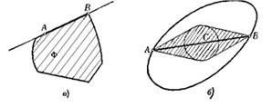 Рис. 1.1.29 в) Пусть А и В — две граничные точки выпуклой фигуры Ф. Отрезок АВ может целиком состоять из граничных точек (рис. 1.1.30, а) — это и есть первый случай, указанный в условии задачи.