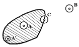 Рис. 1.1.3 По отношению ко всякой плоской фигуре все точки плоскости делятся на три категории: внутренние, внешние и граничные. [8, 14] Определение 1.1.4. Точка фигуры называется внутренней, если существует круг (хотя бы очень малого радиуса) с центром в этой точке, целиком принадлежащий фигуре. Внутренними точками фигуры будут, например, точки А и А' на рис. 1.1.4.