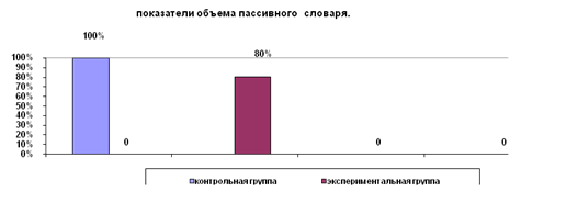 Как видно из диаграммы, объем активного атрибутивного словаря у дошкольников с ОНР значительно меньше, чем у детей с нормальным речевым развитием. Дети с ОНР , например, в ряде случаев называли цвета по-другому: розовый- морсовый, голубой- небный. Второе задание было направленно на исследование объема пассивного атрибутивного словаря у детей, Полученные результаты показали, что все дети экспериментальной группы знают основные цвета, однако примерно половина детей экспериментальной группы не различают цветовые оттенки (голубой, розовый, сиреневый). Особую трудность представляет для детей экспериментальной группы понимание прилагательных, обозначающих тактильные ощущения. 6 детей из 10 детей с трудом различают значение слов – колючий, шершавый, гладкий, пушистый. 2 ребенка затруднялись в понимании прилагательных, обозначающих ширину и толщину. Данные представлены на диаграмме 2. Диаграмма 2 Исследование объема пассивного словаря