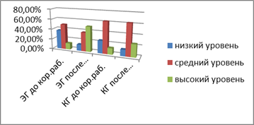Диаграмма№3. Уровень состояния звукопроизношения у детей в ЭГ и КГ.